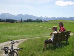 Unser Bauernhof liegt inmitten grüner Wiesen am Rand des Kempter Waldes.